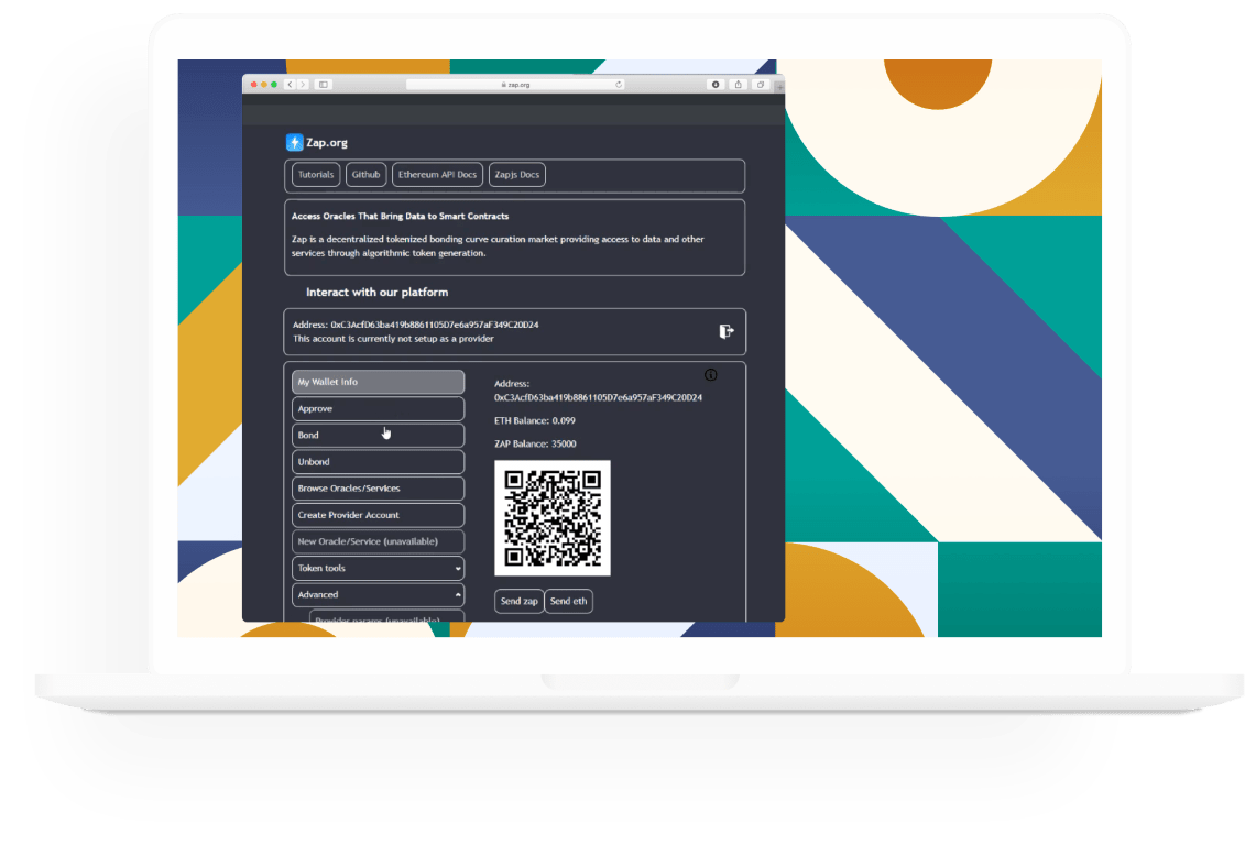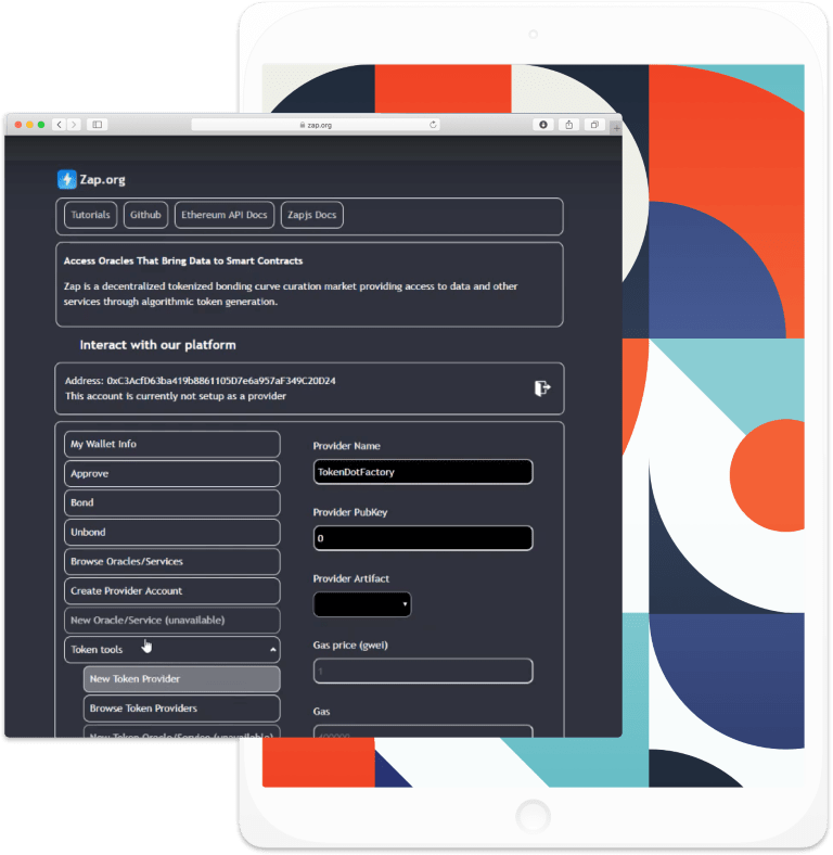 - Zap Bondage — executes the “bonding mechanism”: definition of available access-cost/access-supply curves, determined by the data-provider; calculation of the subscription prices for specific data-providers, referring to corresponding query cost; ZapBondage holds dots (1 dot = 1 query) in escrow between the provider and the subscriber throughout the process of subscription until the transaction takes place.
