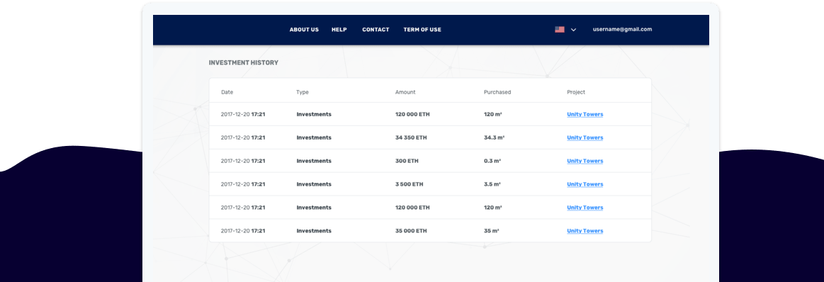 Also, our team ensured smooth user experience during ICO. At the ICO stage, we were responsible for servers maintenance, QA of 3rd party code, and deployment to the production instance. Now we continue working on the platform, creating a building management solution that would link together IoT, BI analytics, and blockchain.