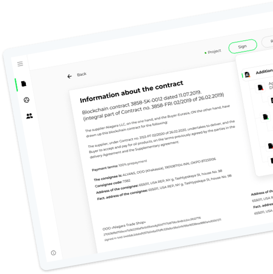 The client has already had a system made on 1C software and a previously made by other team unsuccessful Blockchain solution, however they had a clear idea that Blockchain could be a perfect choice for such a responsible information system as document flow in hydrocarbons resale industry. The client was very initiative and eager to learn and thus we also had to spend additional time on training and a detailed explanation of the project’s technical features.