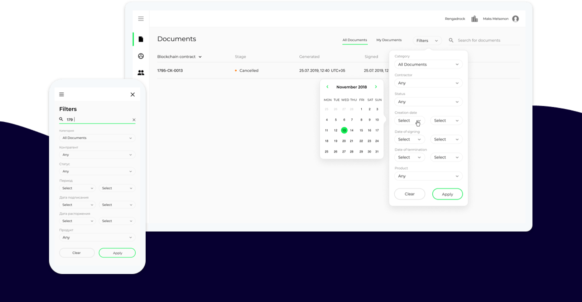And moreover, one of the main business tasks was to create a system, that will be legit and legally significant, since contracts serve as one of the main means of demonstrating someone’s rights and obligations in court issues.
