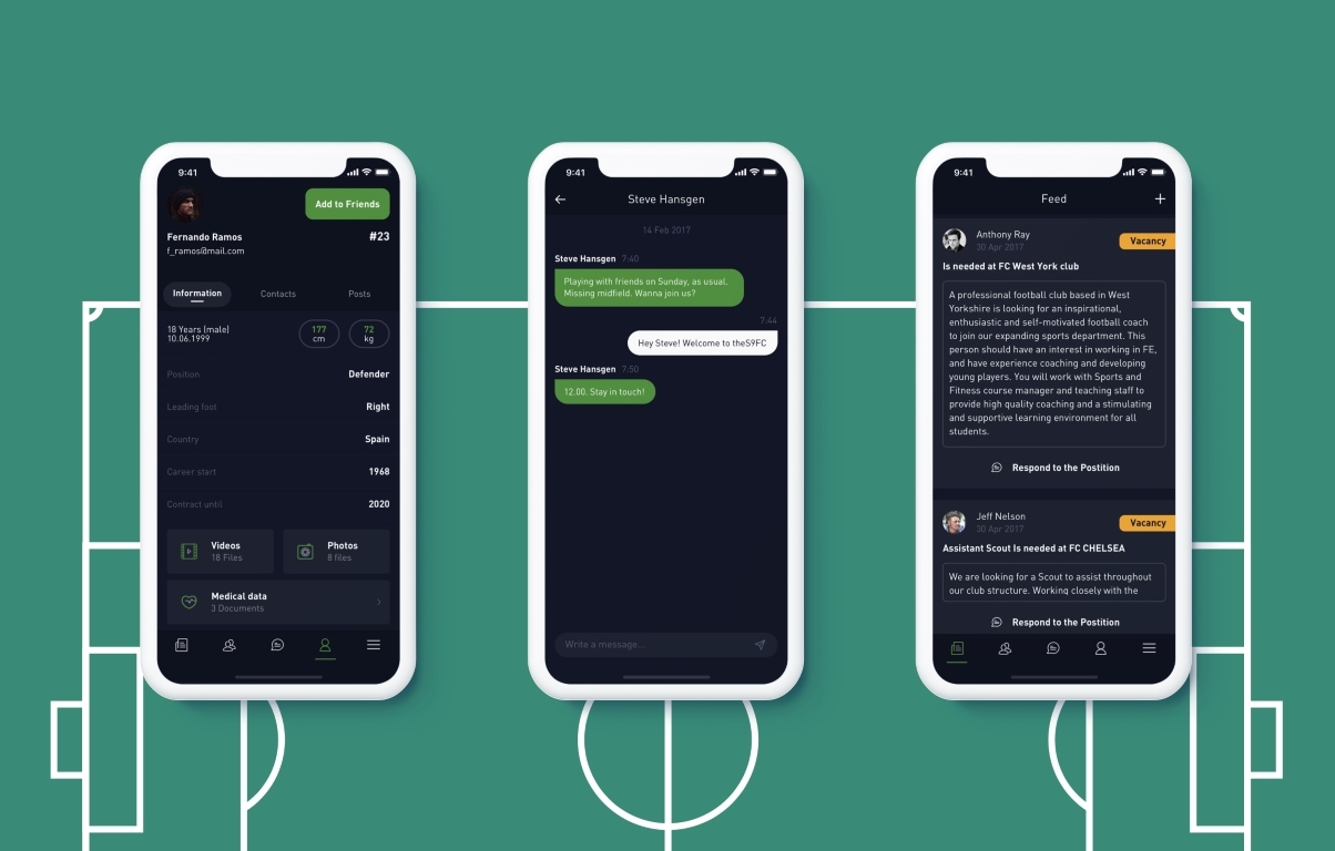 We have provided a full-cycle development for an application that automizes the process of footballers’ recruiting. This is the first recruitment solution for the football sphere specifically, so we not only had to develop the application for mobile and Web but also conduct a marketing investigation together with the customers in order to find out the needs of football scouts and their managers and thus create a solution that will meet all their requirements.